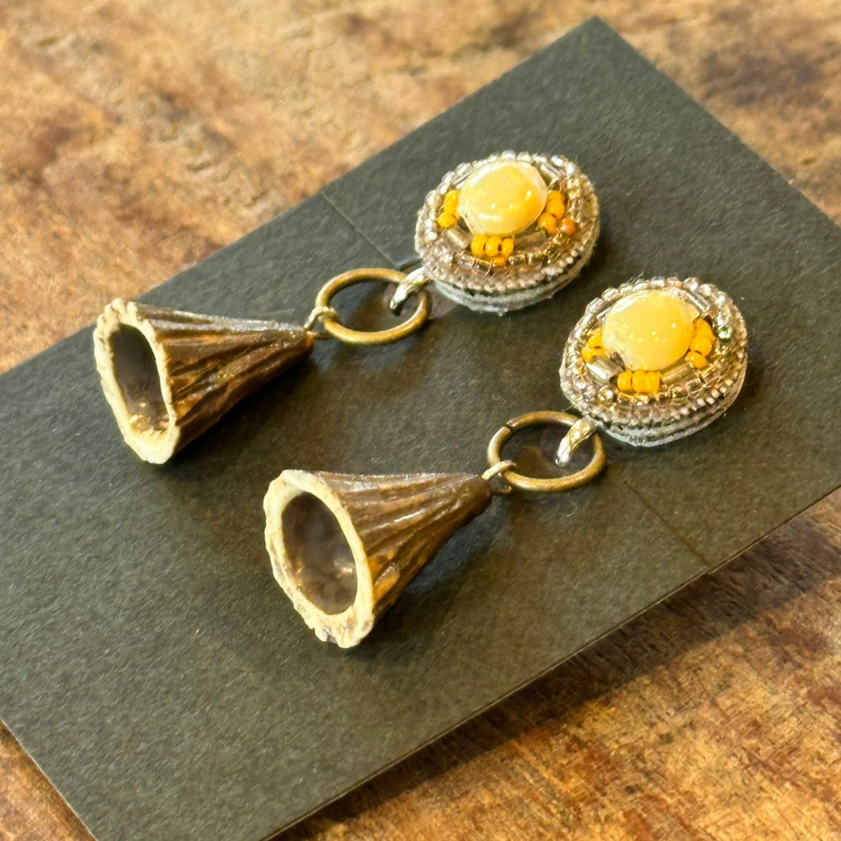 イヤリングは陶器のタッセルが外せます。